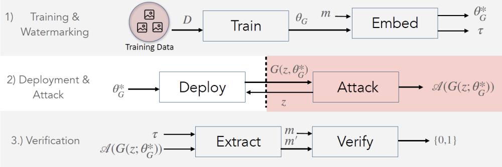 - Security. The “backend” of the watermark must be invisible to both regular audience and malicious actors, since visibility would allow for analyzing its anatomy and launching a reverse-engineering attack.