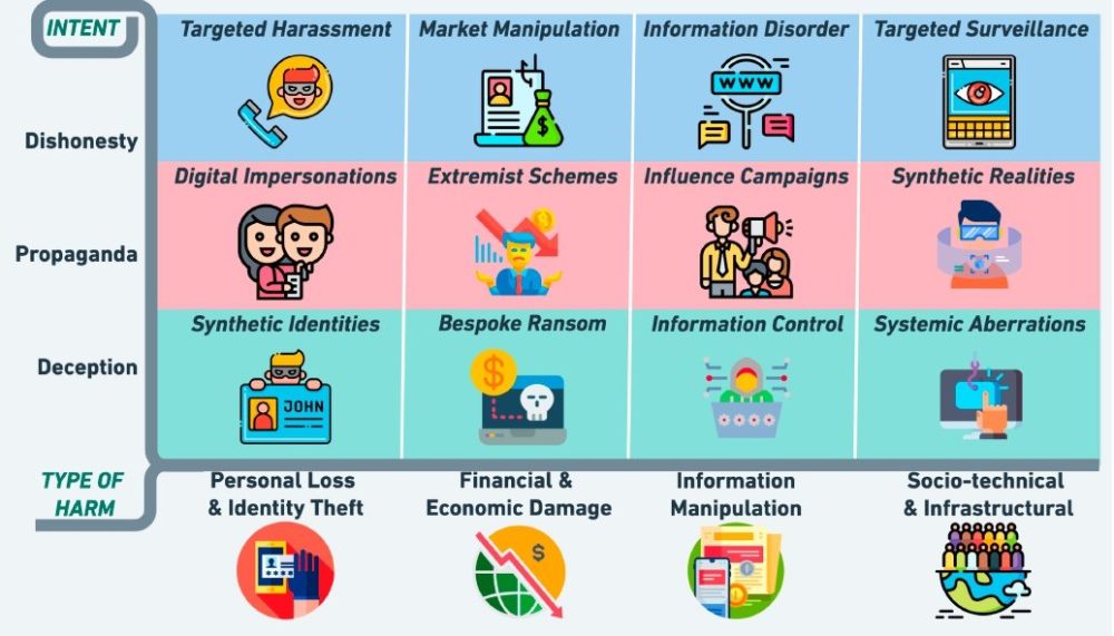 One of the researchers of this 2023 Cornell study suggests a mind map of GenAI’s abuse and possible nefarious applications, including the following types: