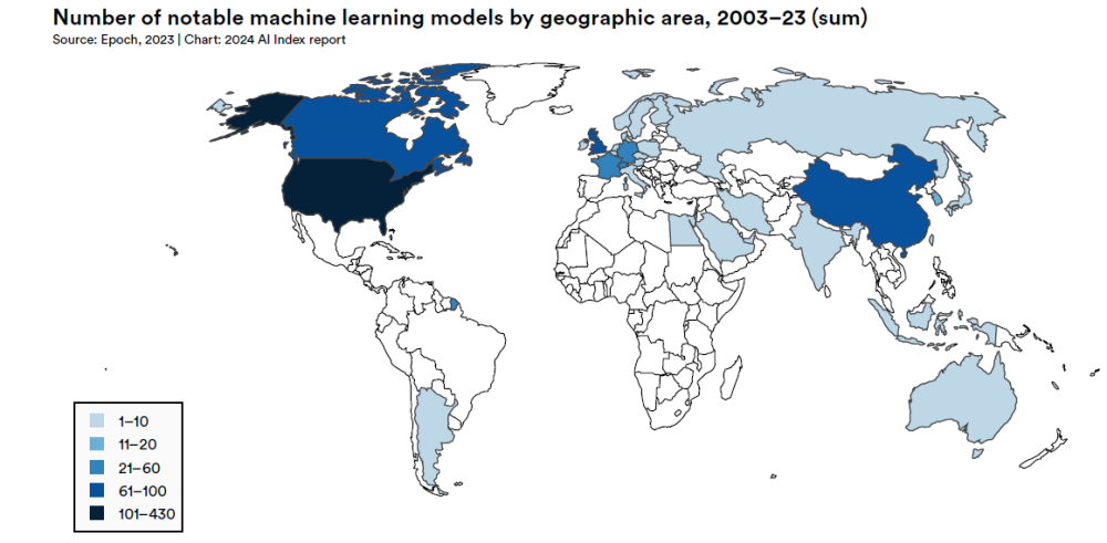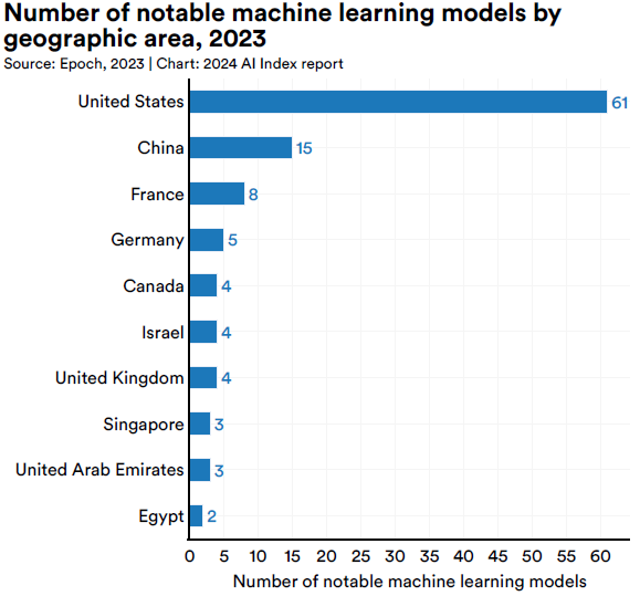 As outlined by Epoch AI — a project that tracks history and impact of various AIs launched since the 1950s, thus making it possible to get a picture of the geopolitical landscape pertaining to Artificial Intelligence. The epithet “notable” in this case refers to the influence, popularity, groundbreaking technology, number of parameters, and other values that AI displays. The current country ranking by the number of notable models is as follows: