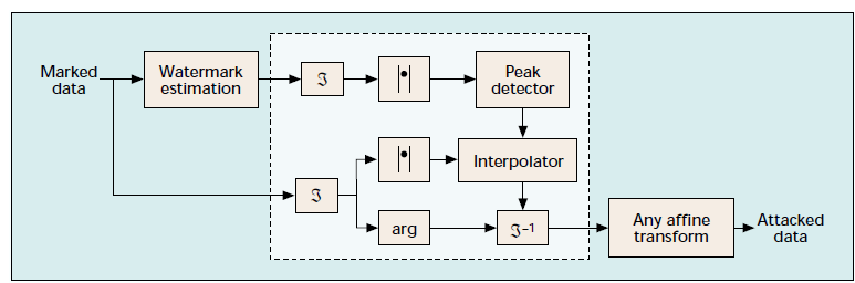 Usually produced against images, it can also be applied against a text watermark if it’s image-based. The attack doesn’t remove a hidden identifier per se, but rather makes the watermark detector synchronisation with the encrypted data distorted. Among the techniques are pixel jittering, and others.
